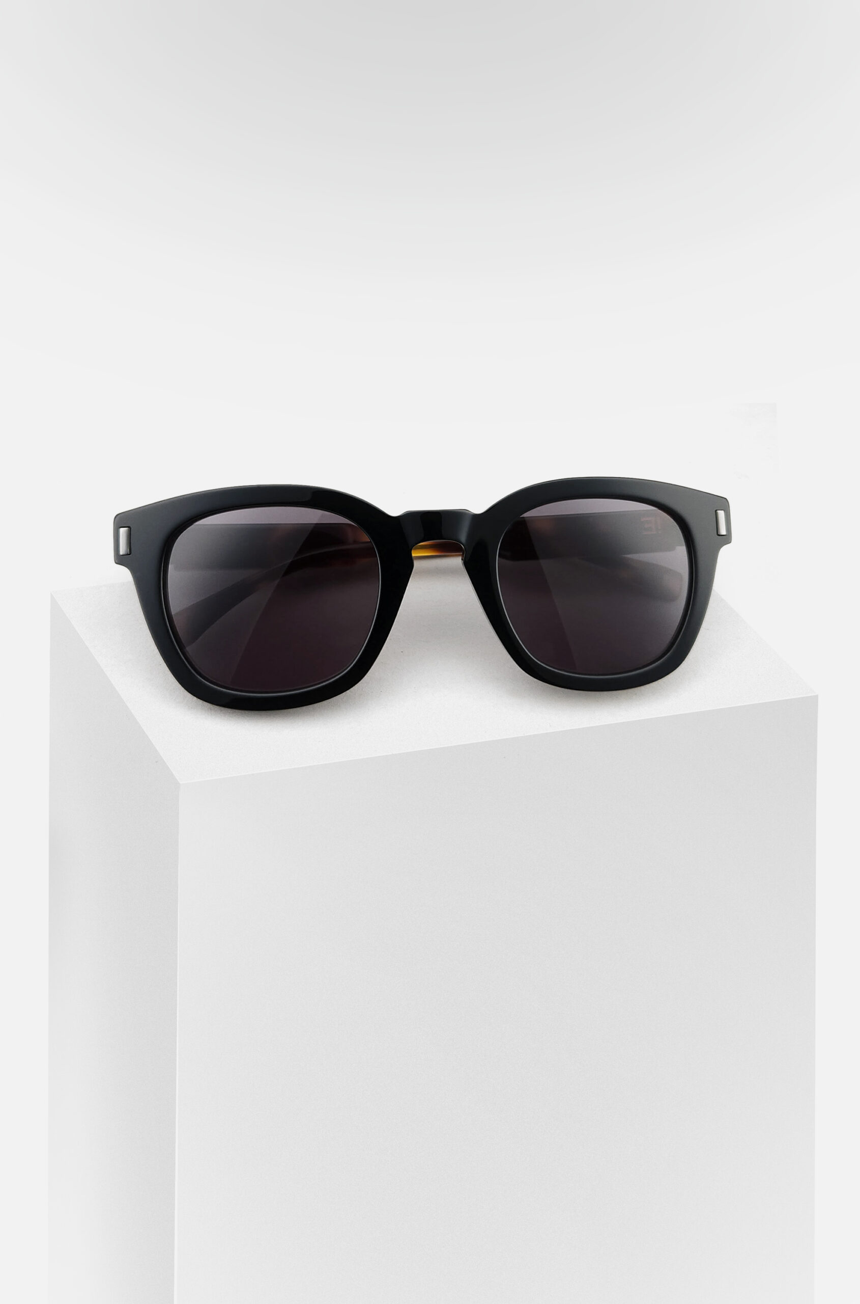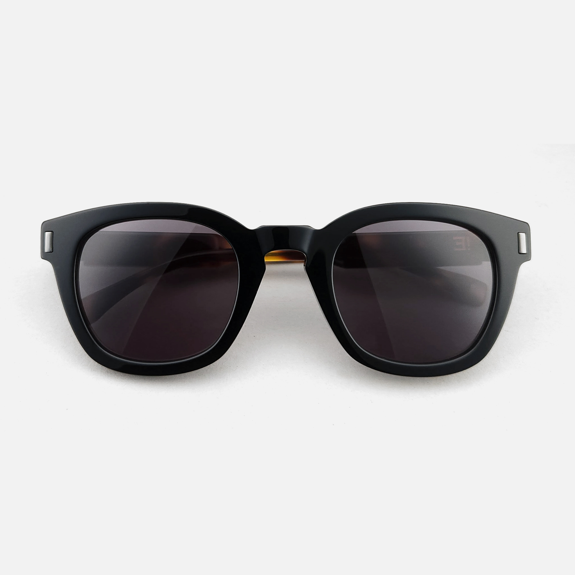 Face de couleur noir, branches de couleur noir. Plaquettes en acétate intégrées.