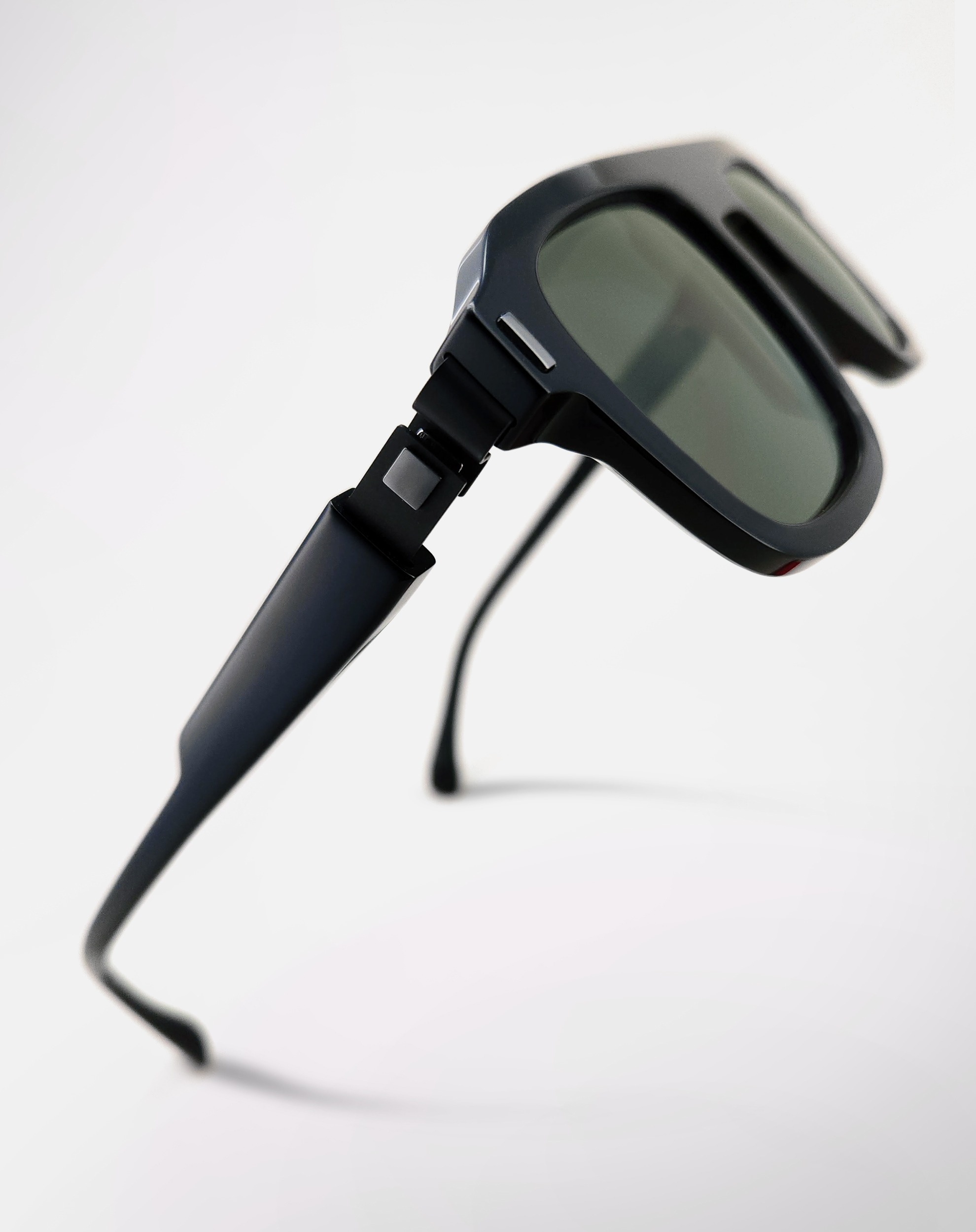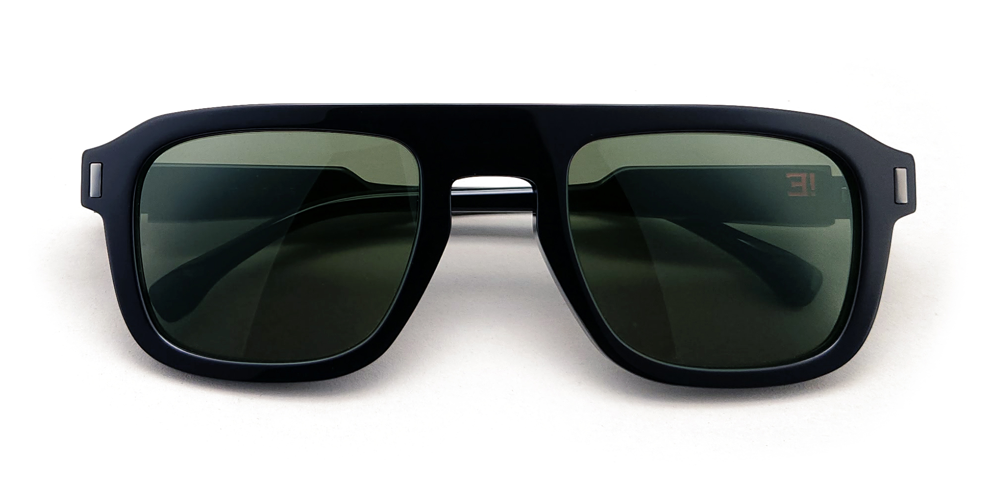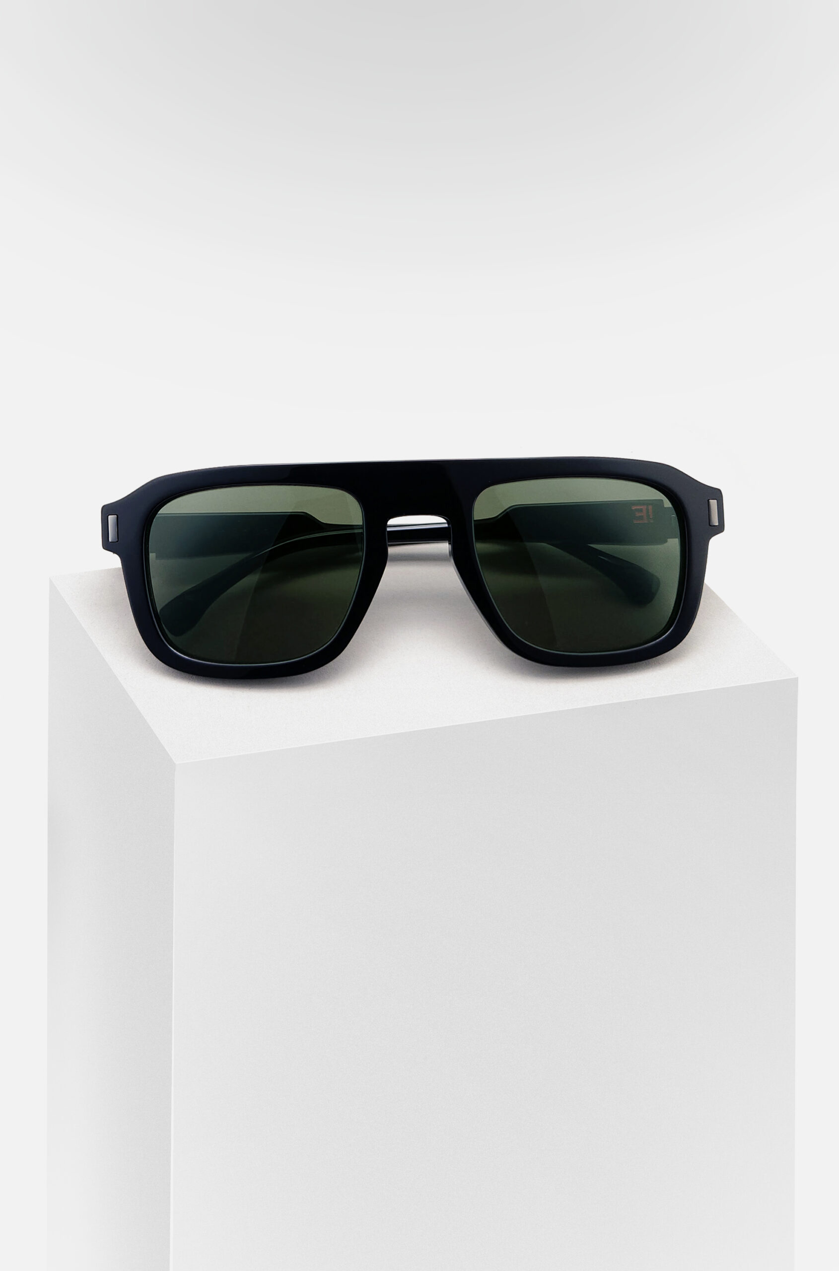 Une monture solaire de forme rectangulaire, objet de design, réalisée en BIO-acétate revalorisé.